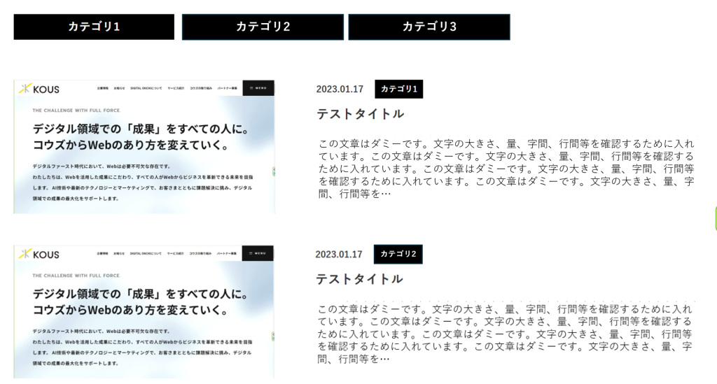 「カテゴリ1・カテゴリ2・カテゴリ3」の部分がカテゴリーです。