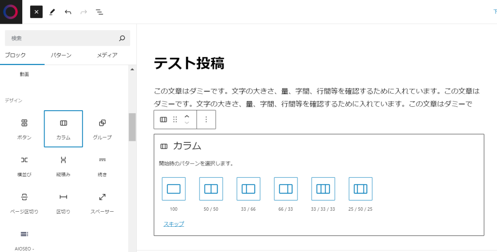 記事内に横一列で均等分けで画像を掲載したい場合は【カラム】を活用してください。(※スマホでは縦配置となります。)