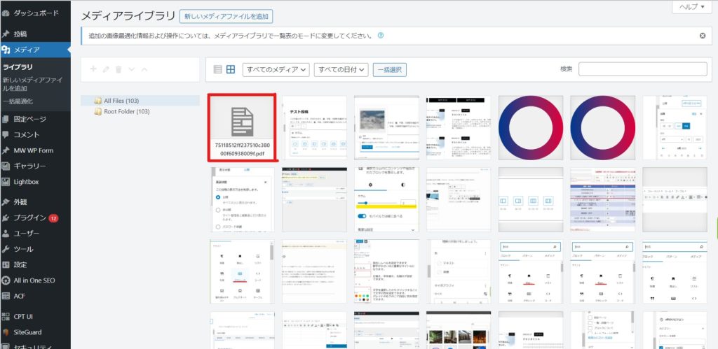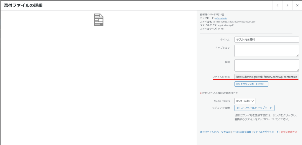 ③登録したPDFをクリックし、下記画面にあるURLをコピーします。